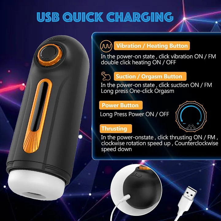 - "One-Click Orgasm" Function for Ultimate Comfort: Our male masturbator features the latest vacuum pumping technology to realistically simulate the process of swallowing and spitting during oral sex and intercourse. When you're ready to ejaculate, try the "One-Click Orgasm" function for a satisfying finish.